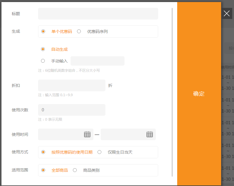 设置的优惠码使用次数,是指单个优惠码能被所有会员使用的总次数。